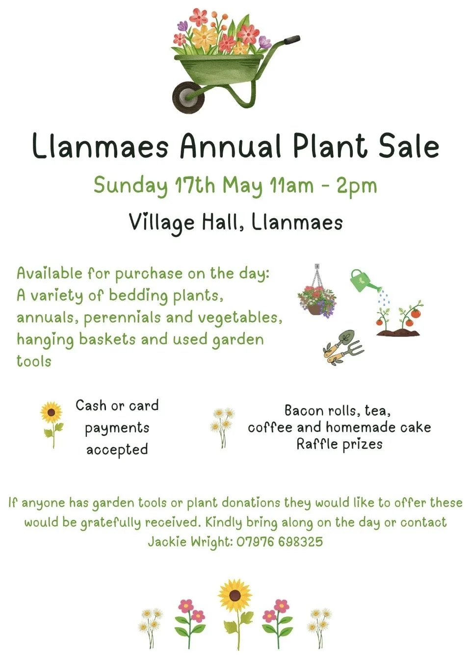 Come along on Sunday 17th May for your Summer bedding plants, perrenials, shrubs, vegetable plants, hanging baskets and more.