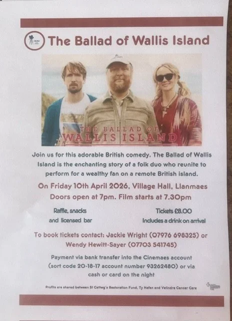 NEXT FILM SHOWING AT LLANMAES VILLAGE HALL - TICKETS NOW AVAILABLE March 22, 2026Jacqueline WrightComment