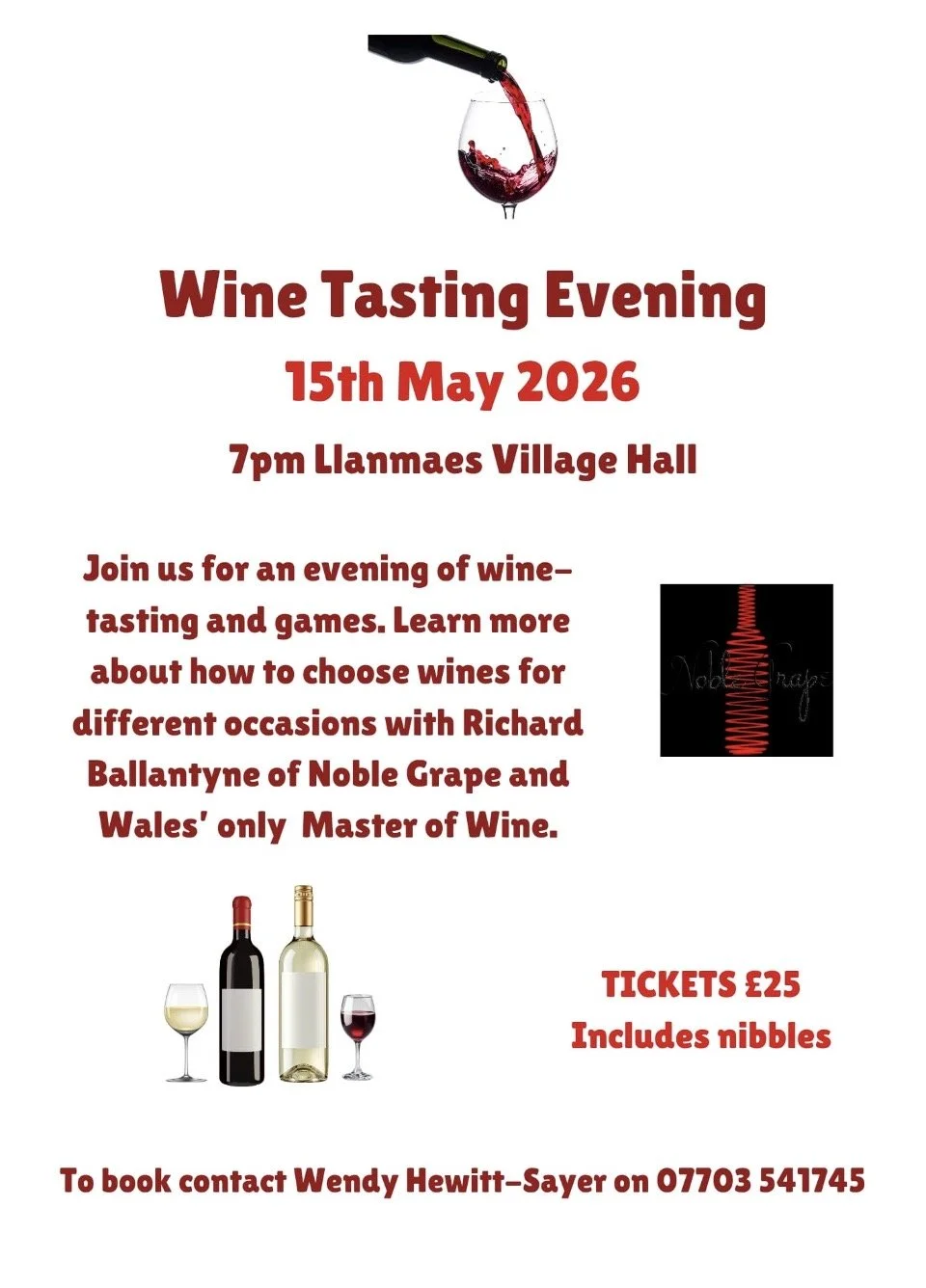 JOIN US FOR AN EVENING OF WINE TAASTING AND GAMES